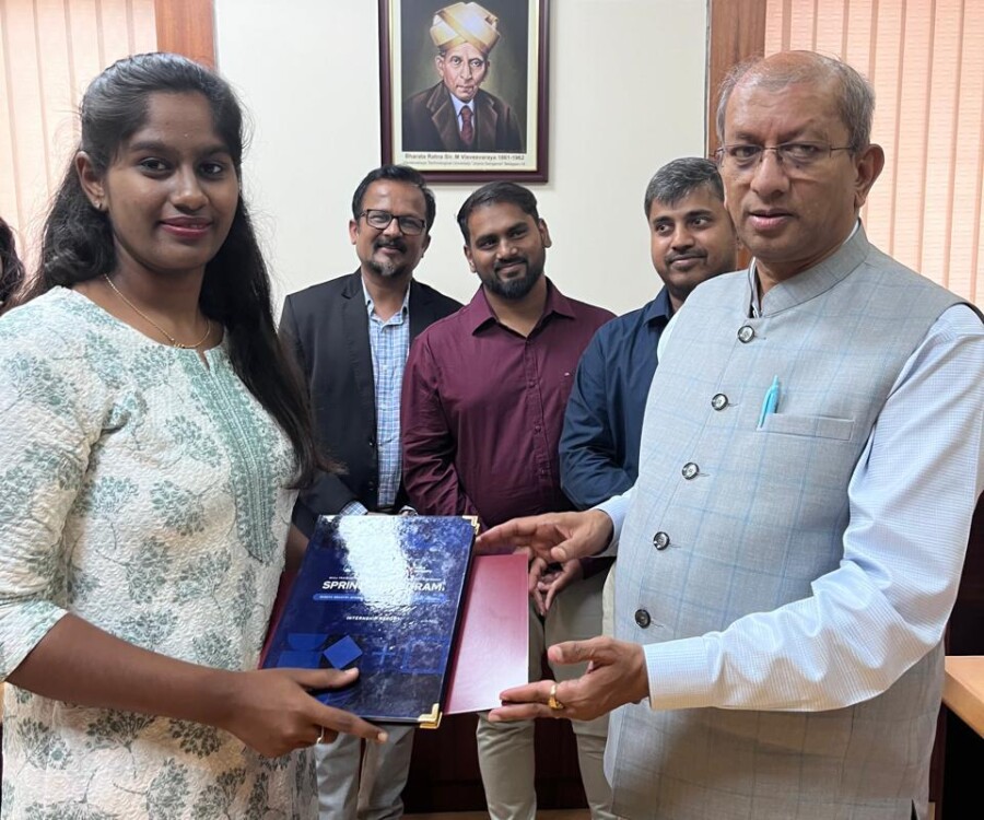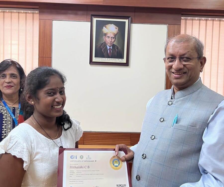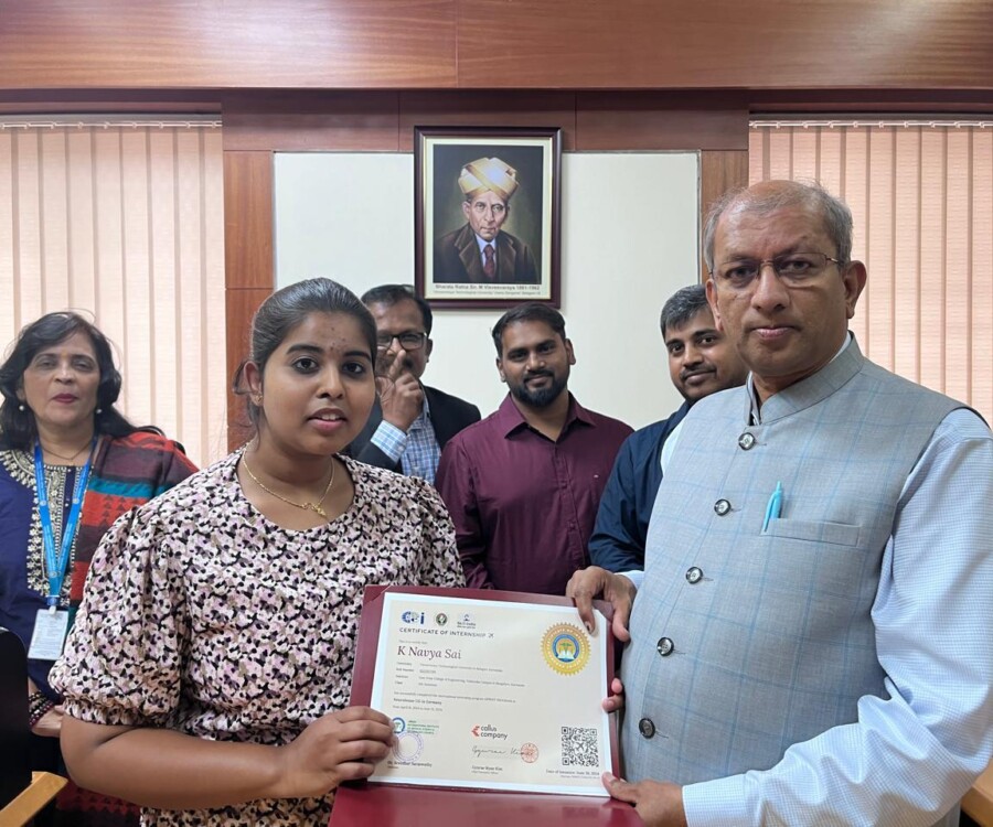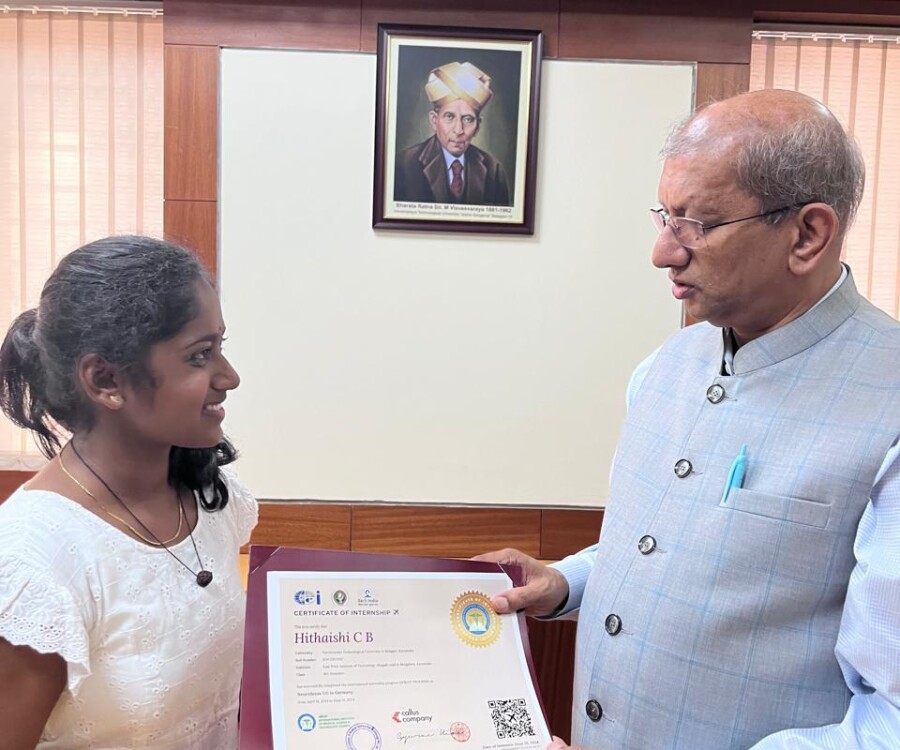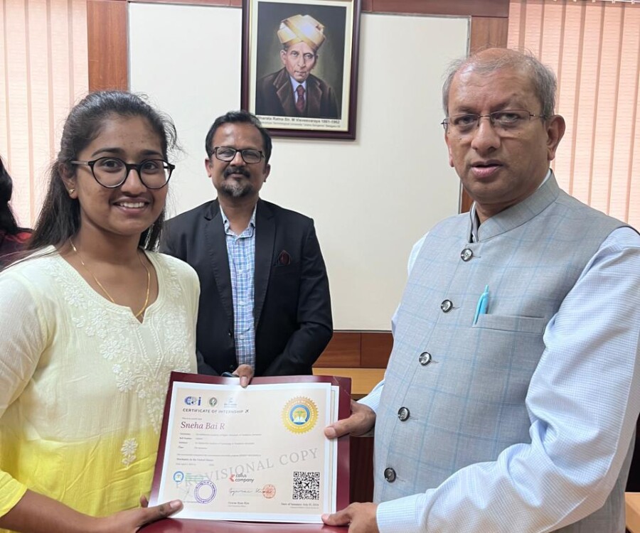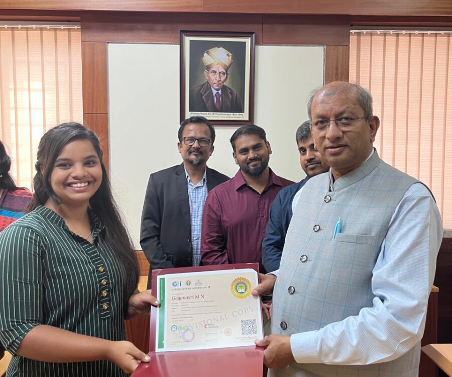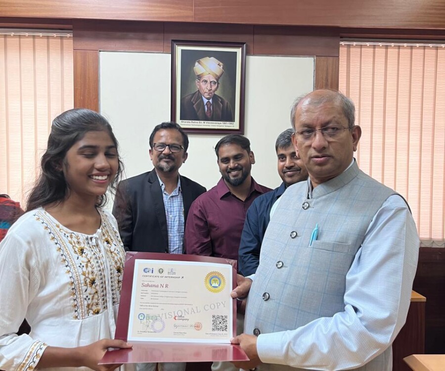 In a historic milestone, the International Institute of Medical Science and Technology Council and Callus company, South Korea, proudly celebrates the certification ceremony of the very first batch of students from the international internship The Edge Program. On this remarkable occasion, the Honorable Vice chancellor Dr.Vidyacshankar is handed over the internship report and foreign certification to the successful students from various institutions under VTU. At this auspicious occasion, Dr.sreedhar Saraswathy, Chairman of AIIMS Technology council, Dr. Sandhya, Director of Skill Development, VTU, Regional directors of VTU and the top officials of AIIMS Technology council such as Prof.Dr.Giri,Prof. Dr. Anil kumar N Joshi, Dr. Deepak Palaksha, Mr.Madhusoodan, and laison officer Mr. Anand, etc, were present.