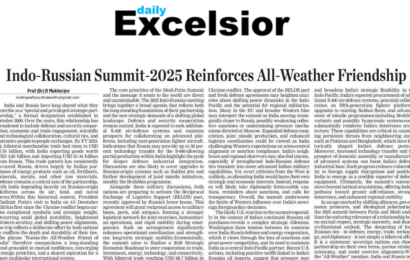 Prof. (Dr.) Dinabandhu Mukherjee is a noted expert in international relations who authored an article for Daily Excelsior titled “Indo-Russian Summit-2025 Reinforces All-Weather Friendship.” Published around December 8, 2025, the article reflects his deep understanding of the long-standing and evolving partnership between India and Russia. Drawing from the themes highlighted in the piece, his perspective […]