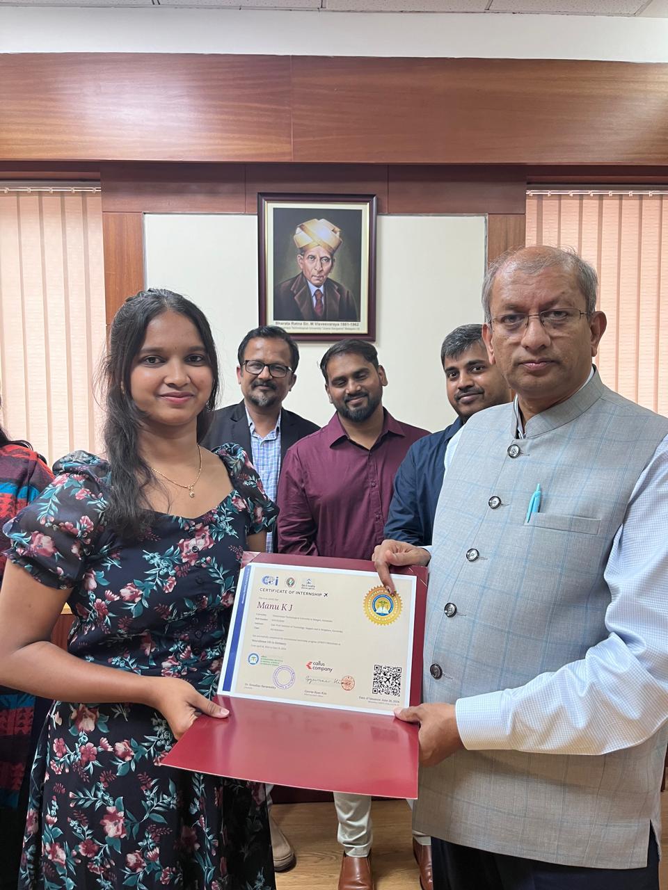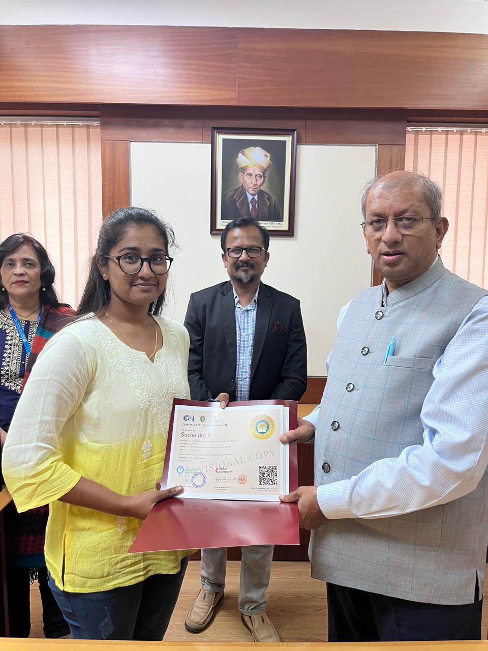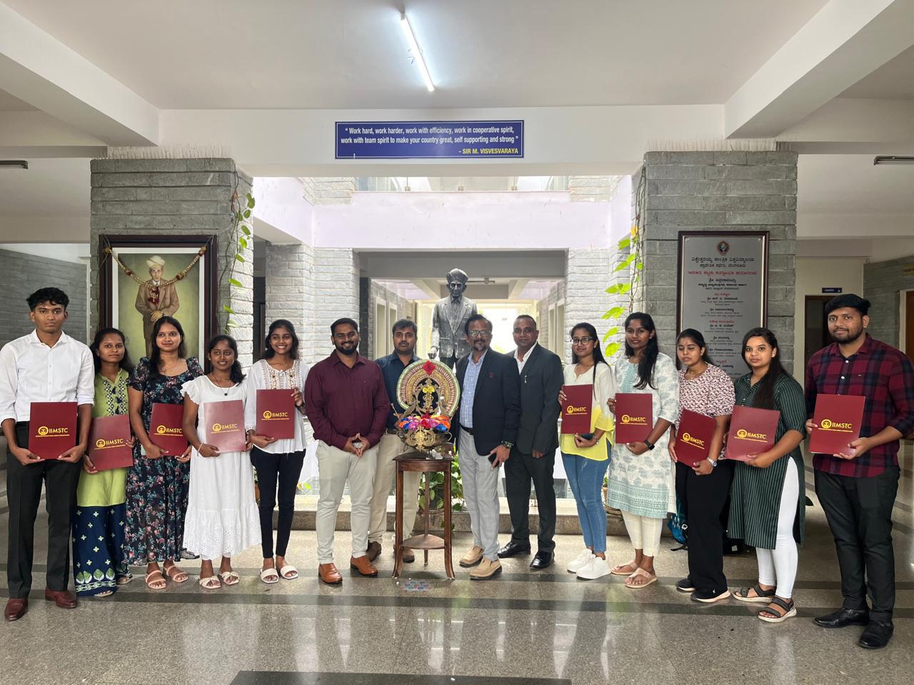 In a historic milestone, the International Institute of Medical Science and Technology Council and Callus company, South Korea, proudly celebrates the certification ceremony of the very first batch of students from the international internship The Edge Program. On this remarkable occasion, the Honorable Vice chancellor Dr.Vidyacshankar is handed over the internship report and foreign certification to the successful students from various institutions under VTU. At this auspicious occasion, Dr.sreedhar Saraswathy, Chairman of AIIMS Technology council, Dr. Sandhya, Director of Skill Development, VTU, Regional directors of VTU and the top officials of AIIMS Technology council such as Prof.Dr.Giri,Prof. Dr. Anil kumar N Joshi, Dr. Deepak Palaksha, Mr.Madhusoodan, and laison officer Mr. Anand, etc, were present.